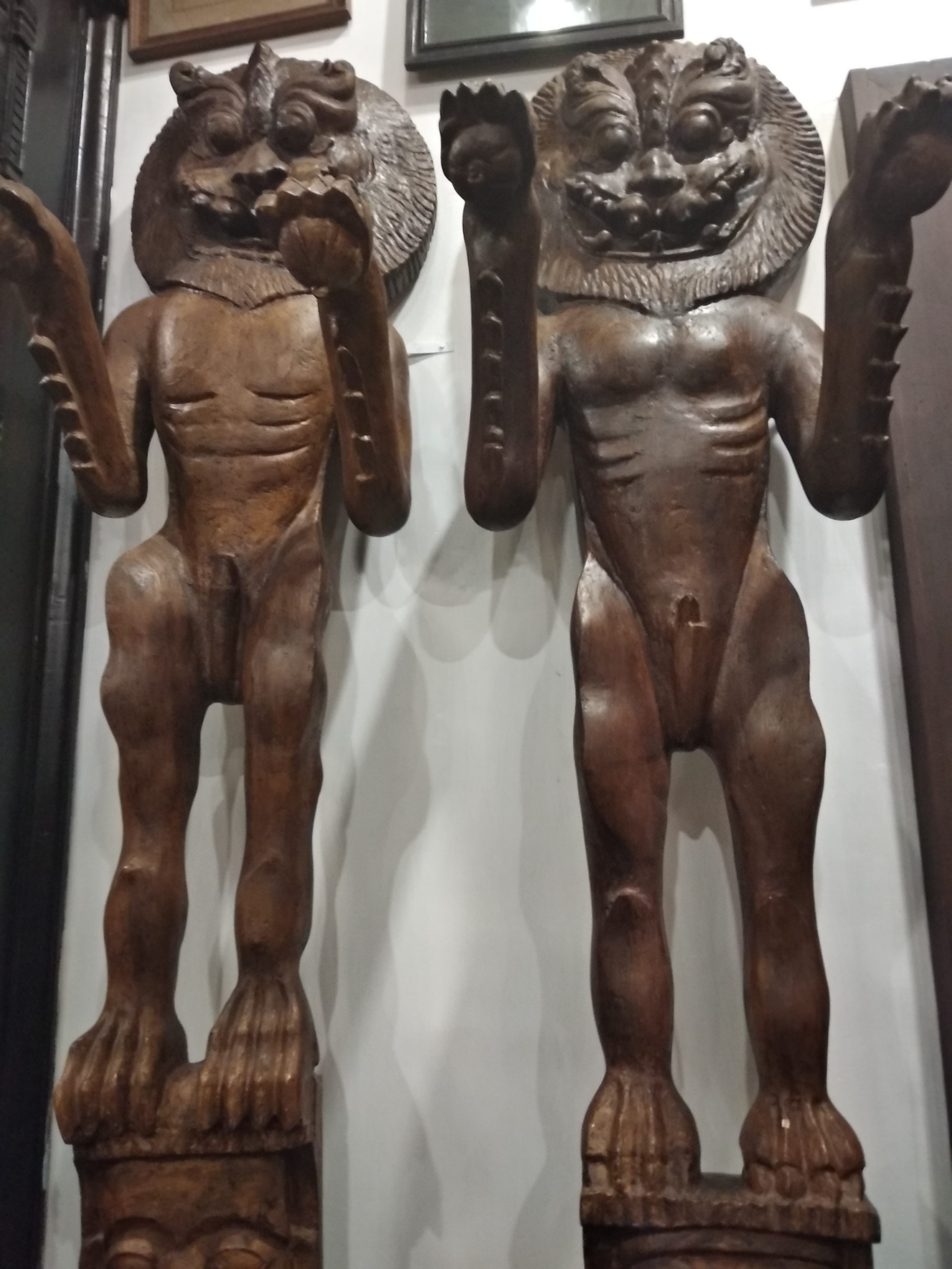 Больше всего подкупало то, что он отделан темным лакированными деревом, массивные деревянные лестницы, тяжёлые и очень маленькие двери. И куча экспонатов. Сам музей построили и открыли десять лет назад. Но очень много старинной отделки, которую историки искали по старым заброшенным храмам. Вот например, потолок, который весит 64 тонны, весь собран из деревянных плашек, а все цветы для декора – уникальные в своем роде, ни один цветок не повторяется.